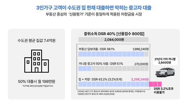 솔버사피엔스는 DSR이라는 안전장치가 오히려 자동차 관련 금융 이용을 방해하고 있다고 보고, 가처분 소득(수입 중 소비와 저축 등으로 자유롭게 소비할 수 있는 소득) 기반의 새로운 평가 모델을 대안으로 제시했다.