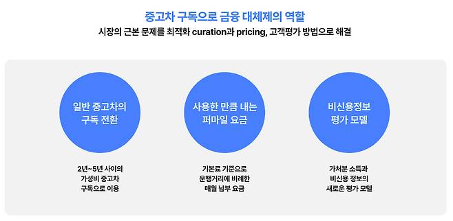중고차 구매 시에도 DSR(총부채원리금상환비율) 규제가 엄격히 적용되면서 주택담보대출이나 기존 신용대출이 있는 경우 차량 등급을 낮춰 구매하거나 아예 구매를 포기하는 사례가 적지 않다. 대안으로 렌트·리스와 같은 임대형 상품을 찾는 경우도 많다. 그러나 기존 렌트·리스 서비스는 업체가 사전에 매입해 보유한 차량 목록 내에서만 선택이 가능하기에 선택의 폭이 제한적이다. 소비자가 원하는 특정 연식이나 모델, 옵션, 색상 등을 기준으로 차량을 찾는 데 어려움이 따른다.