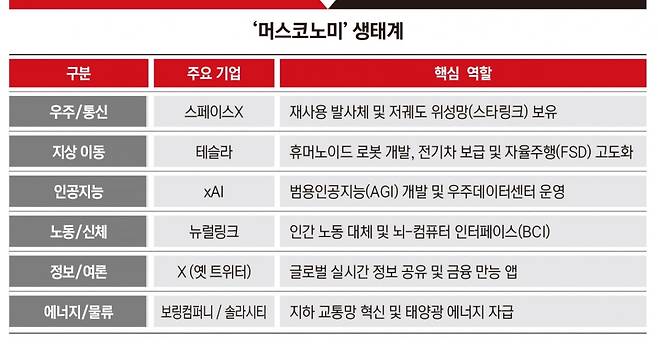 블룸버그는 올해 2월 테슬라와 xAI의 합병을 보도하며 머스코노미라는 표현을 다시 꺼내들었다. 개별 거래가 아니라 하나의 제국이 완성되고 있다는 맥락에서다.