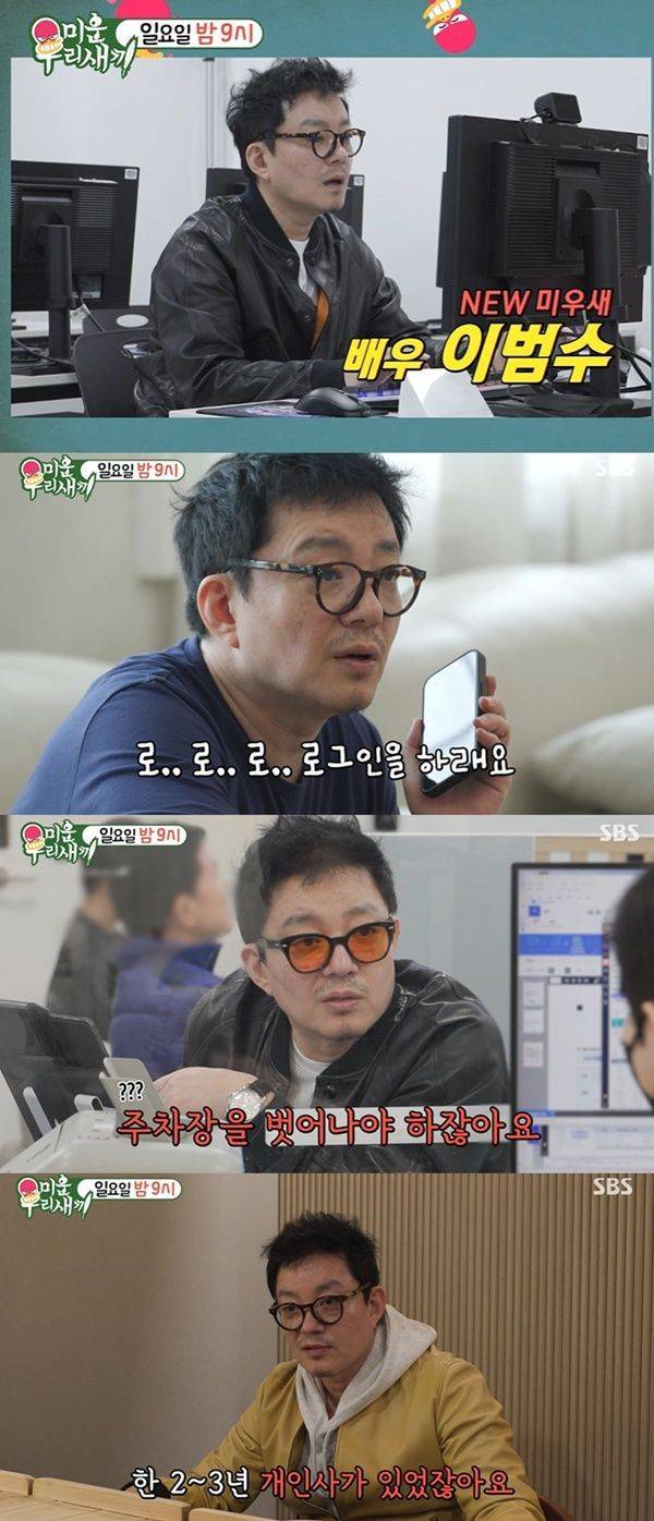 이날 이범수는 컴퓨터 기초반 수업을 듣는 모습으로 등장했다. 그는 "세상에서 가장 싫어하는 단어가 로그인"이라고 털어놨다.
