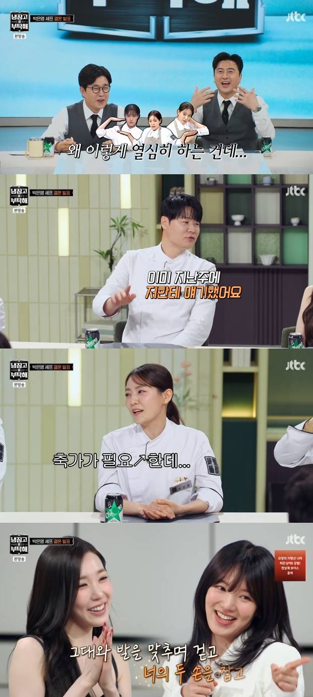 이날 셰프들의 결혼식 로망에 대한 대화가 이어졌다. 김성주는 "박은영이 발표할 게 있다"라고 말했고, 박은영은 "제가 품절녀가 된다는 걸 발표하고 싶었다. 어디서 말씀을 드리면 좋을까 하다가 친정같이 생각하는 '냉부'에서 발표하기로 했다"라고 전했다.