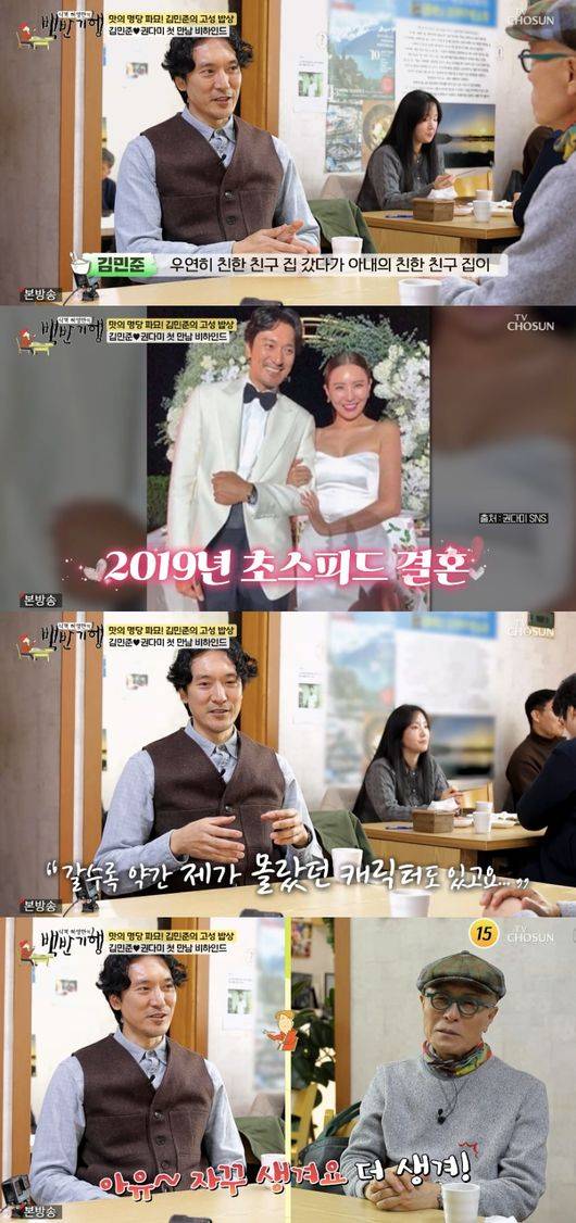 특히 김민준은 패션 디자이너 사업가이자 지드래곤의 친누나로 알려진 아내 권다미와의 첫 만남을 떠올려 눈길을 끌었다. 그는 “우연히 친한 친구 집 갔다가 아내의 친한 친구 집이 그 근처였다. 그렇게 해서 이제 자연스럽게 만나게 됐고 연애도 거의 몇 달 안했다”라고 말했다.