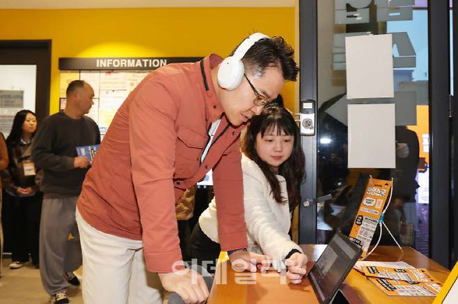 [이데일리 김태형 기자] 오언석 도봉구청장이 지난 2일 ‘쌍리단길 플랫폼 모두온’에서 열린 ‘평생학습 팝업스쿨’ 오픈행사에서 체험활동을 하고 있다.