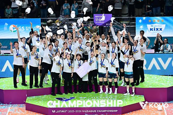 GS칼텍스는 4일 서울 장충체육관에서 열린 2025~2026 V리그 여자부 챔피언결정전 3차전에서 도로공사를 세트 스코어 3-1로 제압하며 3전 전승의 완전무결한 우승을 거머쥐었다.