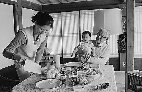 | ▲ 손자와 함께 즐거운 식사를 기다리며 민병갈은 결혼하지 않은 채 양자만 4명을 들였다. 손자를 안고 며느리가 준비하는 식사를 기다리고 있다. |