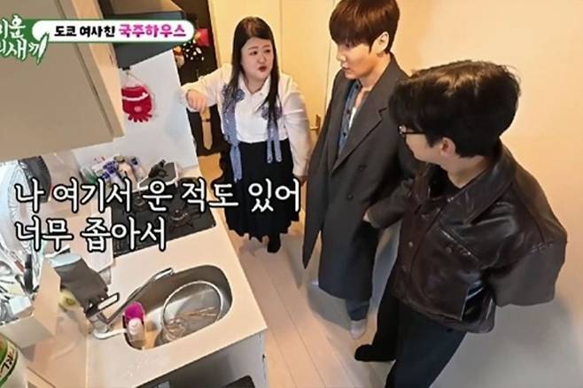 이국주는 침대를 따로 두지 않고 소파에서 잠을 청하고 있다고 밝혀 눈길을 끌었다. 또한 국그릇 하나 놓기도 빠듯한 작은 주방과 협소한 욕실 등 일본에서의 현실적인 생활 환경이 공개되며 안타까움을 더했다. 이국주는 "처음에는 공간이 너무 좁아 눈물을 흘린 적도 있다"고 솔직한 심정을 전했다.