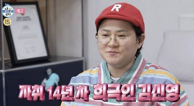 영상 속 김신영은 '나혼산'의 마스코트 윌슨을 끌어안고 "혼자 산 지 14년 차 희극인 김신영"이라며 자신을 소개했다.