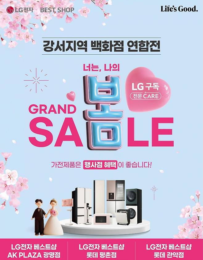 LG전자 베스트샵 AK PLAZA 광명점, 롯데백화점 평촌점, 롯데백화점 관악점이 봄 시즌을 맞아 연합 ‘GRAND SALE’ 프로모션을 진행한다고 밝혔다.