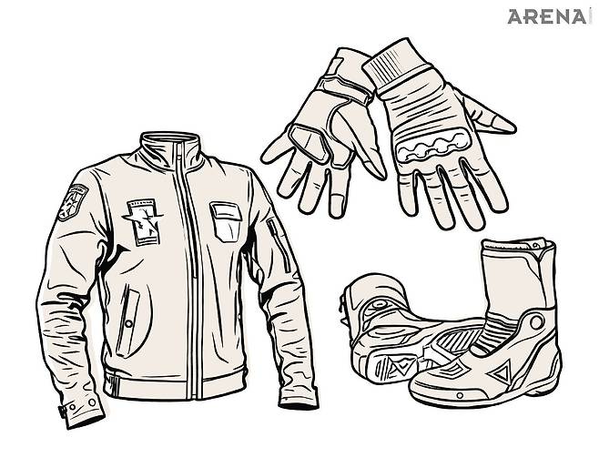 헬멧만 쓰면 되지 뭐. 이런 마음은 거두는 게 좋다. 헬멧은 기본일 뿐이다. 모터사이클을 타기 위해 구비해야 할 안정 장비는 수두룩하다. 조작감을 높이고 손을 보호하는 장갑, 상체를 보호하는 재킷, 하체를 보호하는 팬츠, 발과 발목을 보호하는 부츠가 라이딩 기어의 기본이다. 라이딩 기어마다 안전 인증을 받은 보호대가 적용돼 있다. 라이딩 기어를 처음 입으면 마치 갑옷을 입은 듯 불편하다. 아무리 보호대 소재가 부드러워도 걸리적거린다. 옷 재질 자체가 마모에 강한 소재라 두꺼운 경우도 있다. 불편해도 받아들여야 한다. 불편하기에 그만큼 안전하다. 불편할수록 더 안전하다는 뜻이다. 라이딩 기어는 보험이다. 매달 지출하는 게 부담스러워도 만일을 위해 보험을 준비한다. 라이딩 기어도 불편하지만 만일을 위해 입는다. 입다 보면 익숙해진다. 무엇보다 습관이 중요하다. 애초 모터사이클의 유니폼이라고 여기는 게 좋다. 안전에 관해선 과할수록 좋다.