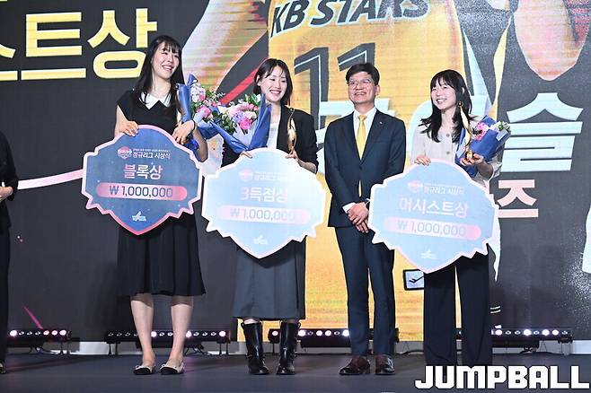 [W시상식] ‘무려 4명!’ 정규리그 우승자 다웠던 KB스타즈 → 통계부문의 주인공으로! 3점상·3점야투상·블록상·어시스트상까지 싹쓸이