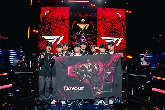 같은 날 T1은 팀 바렐(VL)을 2대0으로 꺾고 기분 좋게 출발했다. 1세트 초반 VL의 압박에 고전했으나 후반전 집중력을 발휘해 역전에 성공했다. 2세트에서는 단 한 차례의 역전도 허용하지 않는 완벽한 경기 운영을 선보였다. 이날 ‘BuZz’ 유병철은 2세트 동안 41킬을 쓸어 담으며 승리를 주도했다.