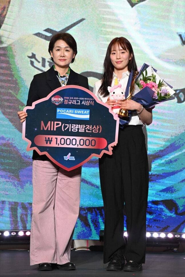 MIP를 수상한 신이슬은 “구단 관계자분들, 코칭스태프, 언니들, 동생들에게 감사하다. 내가 멘탈이 약한데 주변에서 많이 도와주신다. 부모님께도 감사하다. 팬분들 덕분에 버티고 성장했다. 너무 감사하다고 전하고 싶다”라는 소감을 전했다.