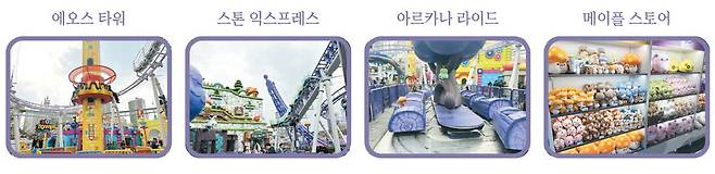 메이플 아일랜드는 600평 규모로 조성됐다. 신규 어트랙션 3종과 리뉴얼 어트랙션 1종, 굿즈숍 메이플 스토어, 식음료 매장 메이플 스위츠로 꾸려졌다. 넥슨은 헤네시스, 루디브리엄, 아르카나 등 메이플스토리의 대표 지역을 야외 공간에 녹여냈다.