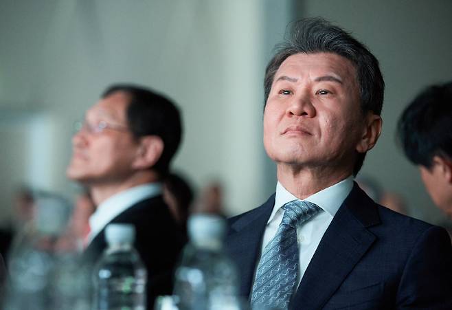[정몽규 HDC그룹 회장이 18일 서울 용산구 드래곤시티에서 열린 HDC그룹 창립 50주년 기념식에 참석해 있다. (사진=연합뉴스)]