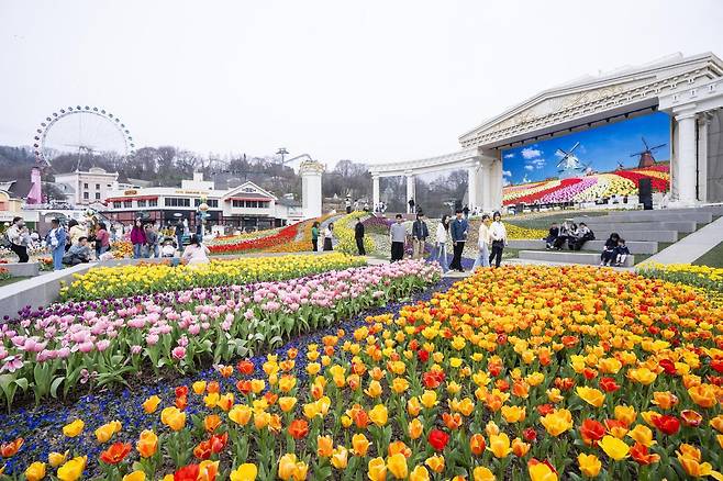 튤립축제는 올봄의 가장 눈에 띄는 콘텐츠다. 튤립, 수선화, 무스카리 등 100여 종 약 120만 송이의 봄꽃들이 절정을 이룬다. ‘마이 스프링 팔레트(My Spring Palette)’라는 콘셉트 아래 튤립 식재 면적을 확장하고 정원 연출을 한층 업그레이드했다는 평이다.