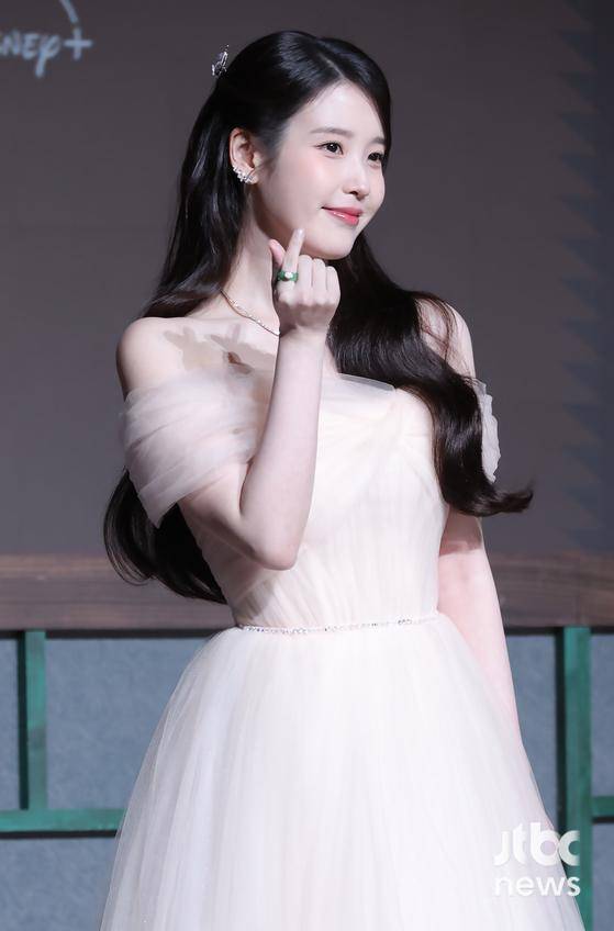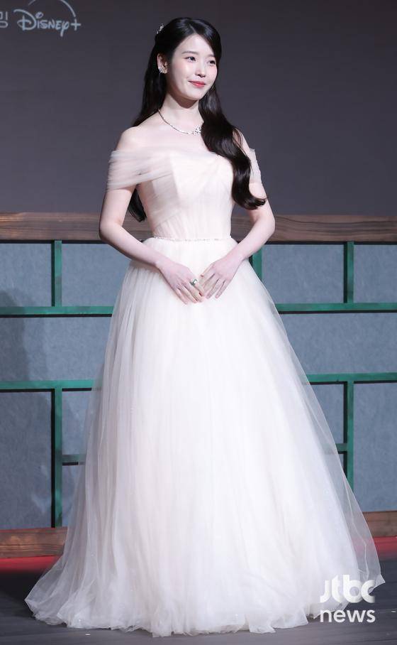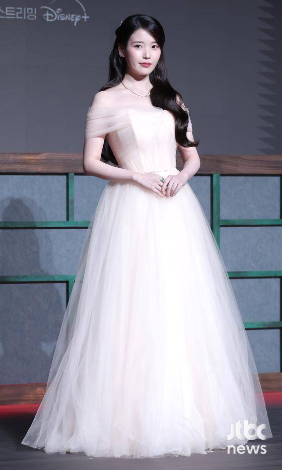 이날 아이유는 베이지 톤의 오프숄더 드레스로 단아한 매력을 드러내며 무대에 올랐다. 특유의 사랑스러운 비주얼이 드레스 자태와 어우러지며 매력을 극대화했다. 특히 극 중 캐릭터인 성희주를 떠올리게 하는 완벽한 미모를 자랑하며 시선을 집중시켰다. 다채로운 하트와 미소까지 더해지며 현장을 화사하게 물들였다.