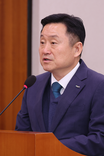 최인호 주택도시보증공사(HUG) 사장이 2월10일 서울 여의도 국회에서 열린 국토교통위원회 전체회의에서 인사말을 하고 있다.