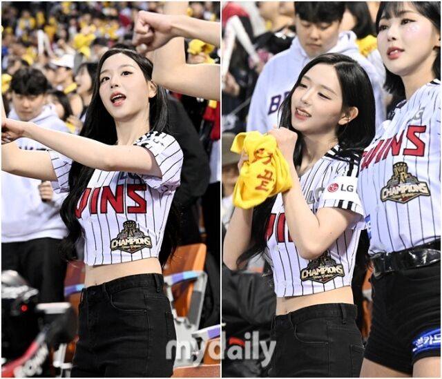 김채연의 활약은 마운드에서 끝나지 않았다. 시구를 마친 김채연은 그대로 퇴장하는 대신 응원석으로 자리를 옮겼다. 노란 수건을 흔들며 치어리더들과 호흡을 맞추는 등 경기 내내 열정적인 응원을 선보였다. '일일 치어리더'로 변신해 팬들과 함께 호흡하는 모습에 관중들도 자연스럽게 환호를 보냈다.