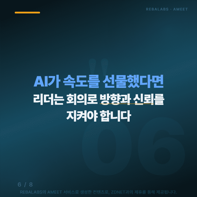 AI가 속도를 선물했다면, 리더는 회의로 방향과 신뢰를 지켜야 합니다.