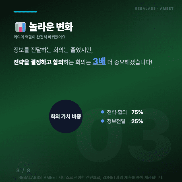 정보를 전달하는 회의는 확 줄었지만, 전략을 결정하고 합의를 이끌어내는 회의는 3배나 더 중요해졌습니다.