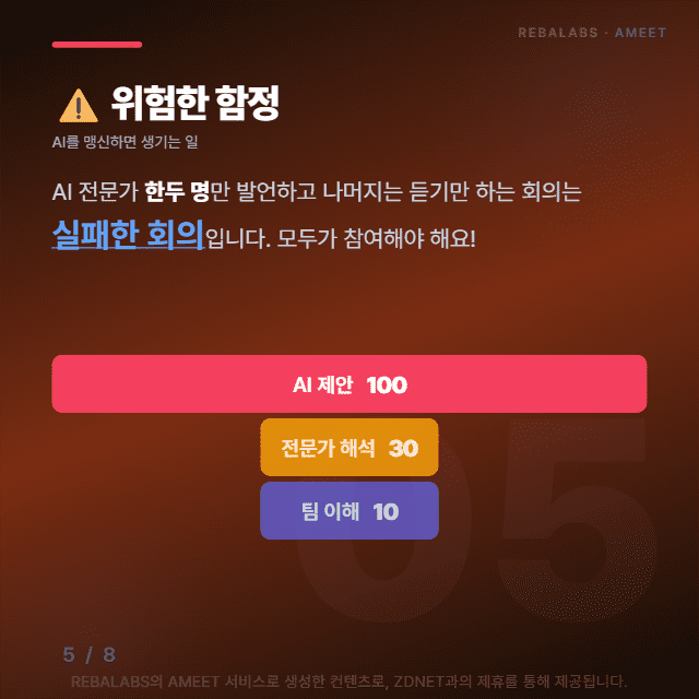 하지만 조심해야 할 함정도 있어요. AI 전문가 한두 명만 발언하고 나머지는 듣기만 하는 회의라면, 그건 실패한 회의라고 볼 수 있어요.