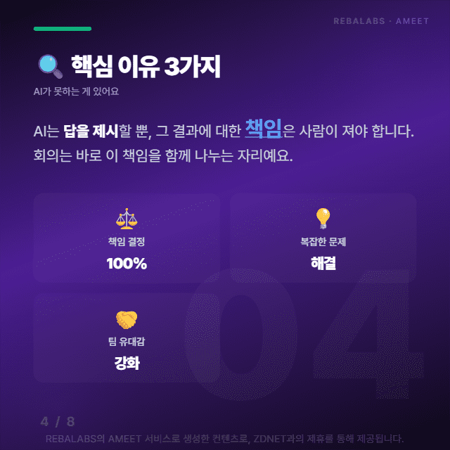 결국 AI 시대의 회의는 정보가 아닌 신뢰와 합의를 만드는 자리랍니다.
