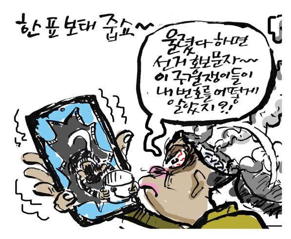 [최경락 만평] 한 표 보태 줍쇼~ 최경락 2026. 4. 6. 20:37 음성으로 듣기 음성재생 설정 이동 통신망에서 음성 재생 시 데이터 요금이 발생할 수 있습니다. 글자 수 10,000자 초과 시 일부만 음성으로 제공합니다. 남성 여성 느림 보통 빠름 음성 재생하기 닫기 음성 재생 중지 번역 설정 번역beta Translated by kaka i 한국어 - English 영어 日本語 일본어 简体中文 중국어 Nederlands 네델란드어 Deutsch 독일어 Русский 러시아어 Malaysia 말레이시아어 বাঙ্গোল ভাষা 벵골어 tiếng Việt 베트남어 Español 스페인어 اللغة العربية 아랍어 Italiano 이탈리아어 bahasa Indonesia 인도네시아어 ภาษาไทย 태국어 Türkçe 튀르키에어 Português 포르투갈어 Français 프랑스어 हिन्दी 힌디어 닫기 번역중 Now in translation 글씨크기 조절하기 글자크기 설정 파란원을 좌우로 움직이시면 글자크기가 변경 됩니다. 가 매우 작은 폰트 작은 폰트 보통 폰트 큰 폰트 매우 큰 폰트 가 이 글자크기로 변경됩니다. (예시) 가장 빠른 뉴스가 있고 다양한 정보, 쌍방향 소통이 숨쉬는 다음뉴스를 만나보세요. 다음뉴스는 국내외 주요이슈와 실시간 속보, 문화생활 및 다양한 분야의 뉴스를 입체적으로 전달하고 있습니다. 닫기 인쇄하기 Copyright © 저작권자 © 중부일보 - 무단전재 및 재배포 금지