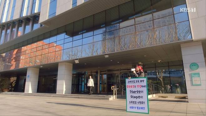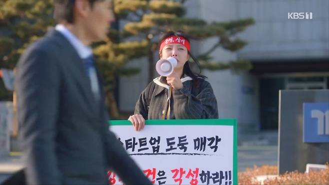 조은애는 한지훈과의 협상 대신 강수토건을 상대로 1인 시위에 나섰다. 머리띠를 두르고 확성기를 든 채 회사 앞에 선 그는 기업 이미지를 겨냥한 방식으로 대화를 시도했다.