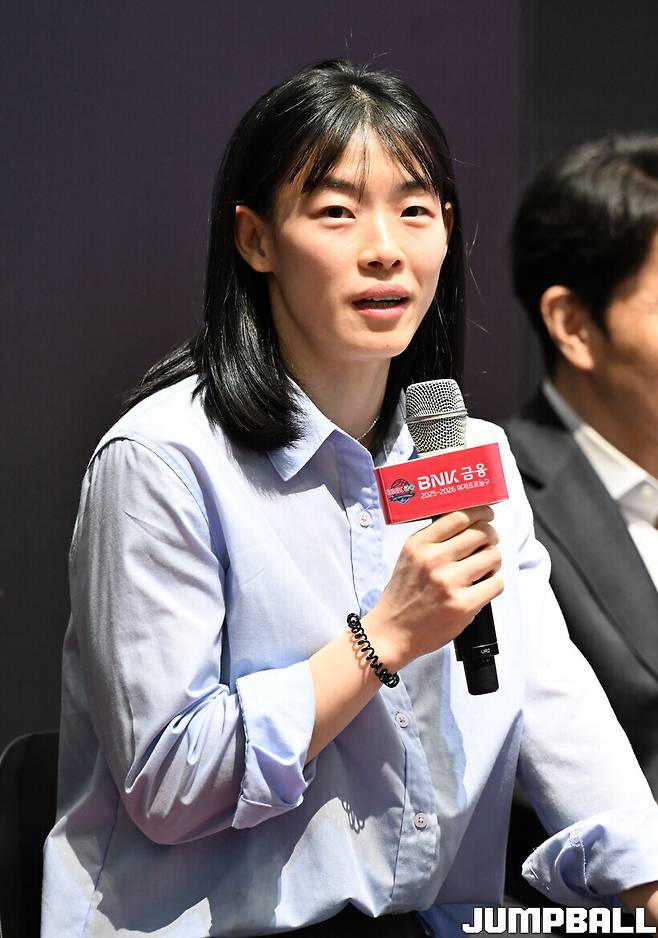 6일 서울시 용산구 드래곤시티호텔 랑데부홀에서 열린 BNK금융 2025~2026 여자프로농구 포스트시즌 미디어데이. 4위로 플레이오프에 진출한 아산 우리은행은 위성우 감독과 대표 선수로 김단비, 강계리가 나섰다.