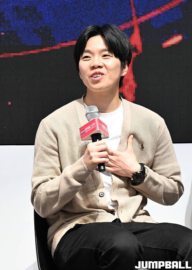 [W미디어데이] “(배)혜윤 언니가 파이널에서 보자는데?”라는 말에 “관중석에서?”라고 화답, 입담 ‘GOAT’ 진안, 용산을 웃게 하다!