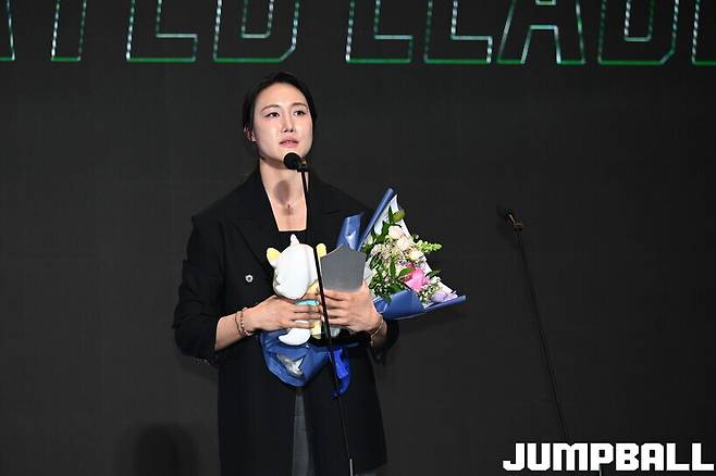6일 서울 용산구 서울드래곤시티호텔 그랜드볼룸 한라홀에서 BNK금융 2025~2026 여자프로농구 정규리그 시상식이 열렸다. 청주 KB스타즈의 1위를 이끈 박지수가 개인 통산 5번째 MVP를 수상한 가운데 정규리그를 빛낸 얼굴들이 수상자 명단에 이름을 올렸다. 특히 올해 시상식에서는 눈길을 사로잡는 항목들이 많았다. 그래서 ‘시상식 이모저모’를 준비했다.