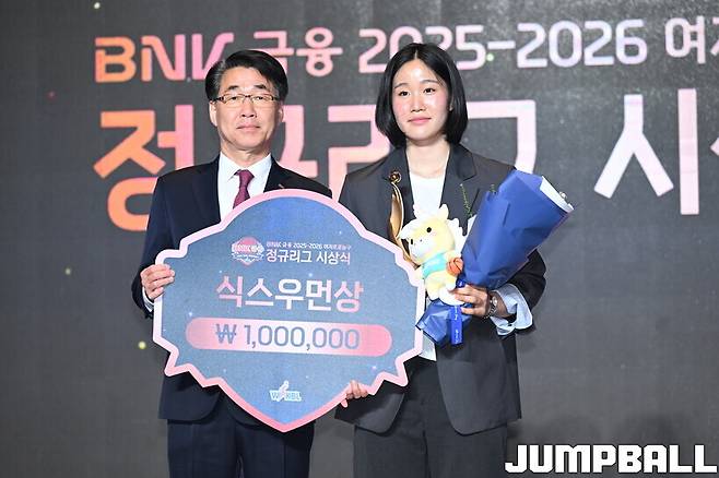정규리그 30경기 중 29경기에 선발로 나선 송윤하(KB스타즈)가 식스우먼상을 수상했다.
