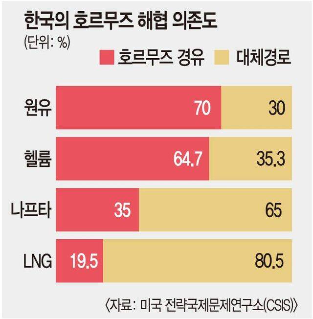 CSIS는 “한국은 원유뿐 아니라 다양한 핵심 자원에서도 호르무즈 의존도가 높다”며 “향후 2~6개월 동안 운송, 물류, 석유화학, 농업, 식음료 등에서 물가 상승의 파급 효과가 나타날 것으로 예상된다”고 밝혔다. 연구소는 한국이 헬륨의 64.7%를 카타르에 의존하고 있어 반도체 생산 역시 차질이 빚어질 수 있다고 봤다. 액화천연가스(LNG)·헬륨 생산 거점인 카타르의 라스라판은 지난 2일 이란 공격으로 헬륨 생산을 중단한 상태다.