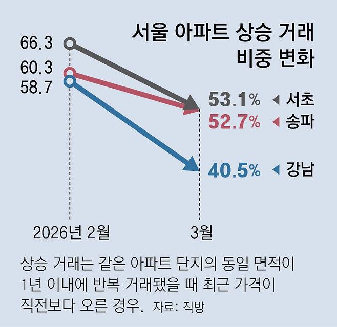 상승 거래 비중 축소는 강남 3구(강남·서초·송파구)가 주도했다.