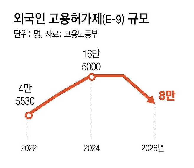내국인 노동 공급 감소로 외국 인력 의존도가 갈수록 높아지는 상황에서 이 같은 단기 순환 구조로는 산업 경쟁력을 뒷받침하기 어렵다는 지적이 나온다. 한국노동연구원장을 지낸 최영기 한림대 객원교수는 “고용허가제 대신 숙련 외국인 노동자 도입을 확대하고 외국 인력 운용에 대한 기업들의 애로사항을 적극 수렴해 제조업 경쟁력을 유지해야 한다”고 말했다.
