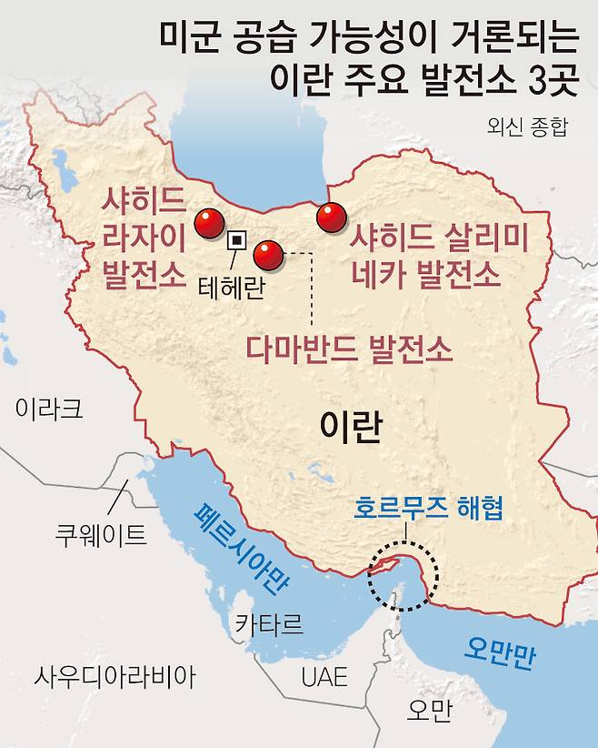 일각에선 미국이 발전소 파괴에 앞서 변전소와 송전탑 등을 먼저 공격해 ‘기능 정지’를 노릴 수 있다는 전망도 나온다.