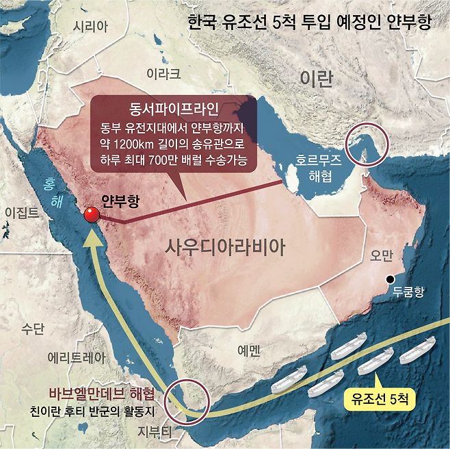 - 韓 유조선 보낼 사우디 얀부항, 하루 500만배럴 놓고 각국 쟁탈전