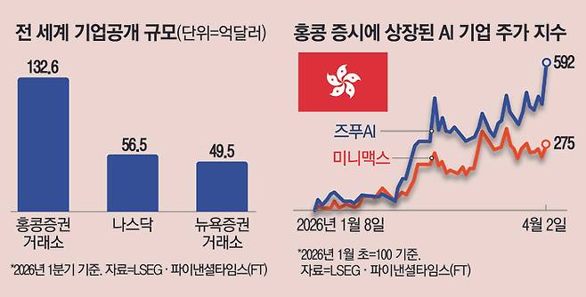 중국 인공지능(AI)과 기술 기업들의 상장 열풍에 힘입어 홍콩 증시의 기업공개(IPO)시장이 올해 1분기 5년 만에 최대 규모를 기록했다.