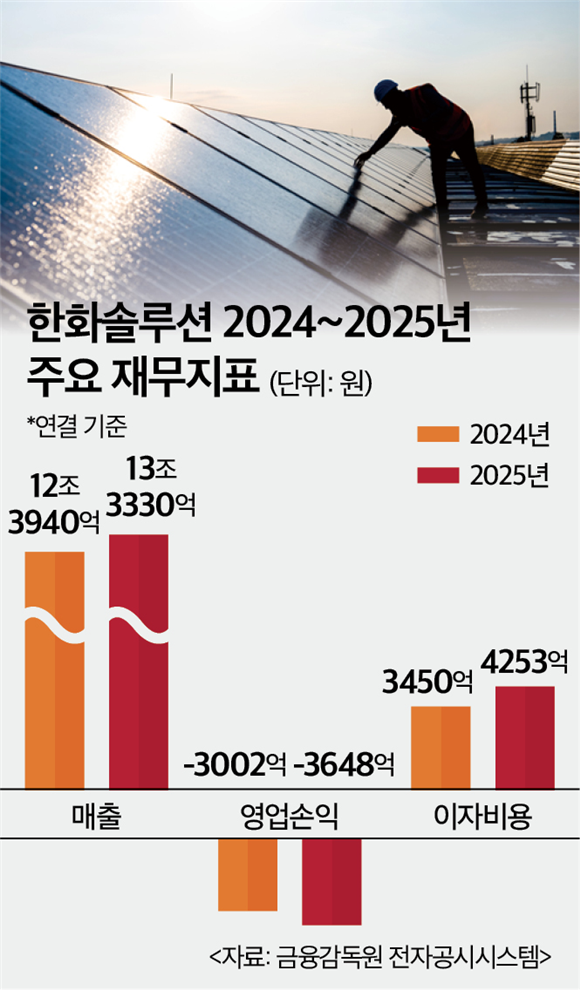 3일 금융감독원 전자공시시스템에 따르면 지난해 한화솔루션 신재생에너지 부문 매출액은 8조 2683억원으로 전년(7조 5720억원) 대비 9.2% 증가했다. 같은 기간 영업손실은 2575억원에서 262억원으로 89.8%가량 감소하며 표면적으로는 가파른 회복세를 보였다.