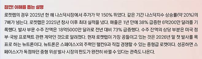 이름은 생소하지만 위성 속 핵심 부품을 만드는 기업들도 있다. L3해리스나 텔레다인 같은 곳들이다. 이들은 우주에서 지구를 선명하게 내려다보는 ‘정밀 센서(눈 역할)’와 위성이 지상과 대화하며 스스로 움직이게 하는 ‘통신 및 제어시스템(두뇌 역할)’을 만든다. L3해리스는 최근 몇 년간 미 전쟁부(국방부)의 미사일 추적 위성 사업 등에 참여하며 핵심 시스템 공급업체로 입지를 넓히고 있다. 텔레다인은 NASA의 차세대 망원경과 화성 탐사선 등에 들어가는 고성능 센서를 공급하며 기술력을 인정받고 있다.