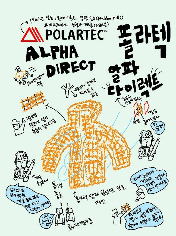 "폴라텍 알파는 미국 특수작전부대SOF의 의뢰를 통해 탄생했어요. 당시 이들의 요구가 뭐였느냐 하면, 군인들은 날씨가 덥거나 추울 때마다 옷을 입고 벗는 것조차 번거롭다고 여겼어요. 그냥 입고 있으면 만사가 해결되는 옷이 필요했죠. 그러니까 쉽게 말해 한 번 입으면 벗을 필요가 없는 만능 가제트 옷을 만들어 달라는 것이었죠."