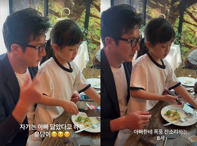 7일 이하정은 "자기는 아빠 닮았다고 하는 유담이"라며 남편 정준호와 딸 유담이를 흐뭇하게 바라봤다.