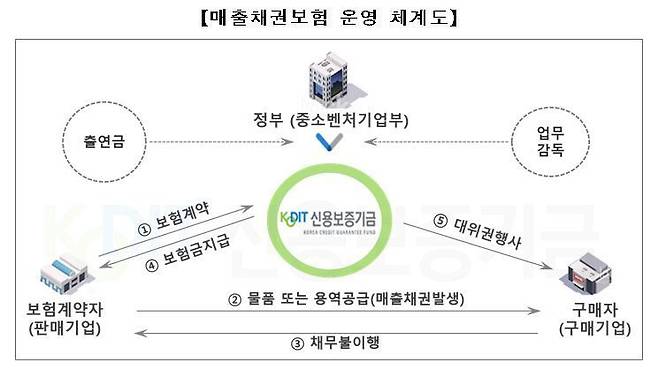 매출채권보험은 신용보증기금이 중소벤처기업부에서 업무를 수탁받아 운영하는 공적 보험제도로, 보험에 가입한 기업은 물품이나 용역을 외상 판매한 후에 거래처로부터 대금을 회수하지 못했을 때 미수금의 최대 90%까지 보장받을 수 있습니다.