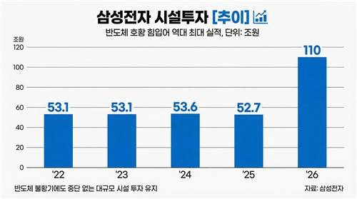 삼성전자는 올해 110조원 이상을 시설 및 연구개발(R&D) 투자에 투입할 계획이라고 밝혔다. 투자 기조를 더욱 강화해 인공지능(AI) 반도체 시대의 주도권을 확보하겠단 각오다.