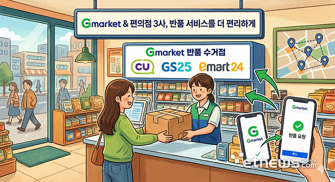 G마켓 관계자는 "고객의 반품 편의를 개선하기 위해 기존 GS25 이외에 CU, 이마트24와 협력해 서비스를 확대한 것"이라고 말했다.