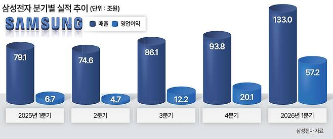 ▶원화약세에 모바일·가전 선전…2분기부터 가시밭길=지난해 1분기 반도체 부문의 부진에도 불구하고 삼성전자의 실적 성장을 견인했던 모바일경험(MX) 사업부는 ‘갤럭시 S26’ 시리즈 사전 판매 신기록을 세우며 깜짝 실적을 거둔 것으로 추정된다. 원화 약세에 더해 원가절감 노력 등에 힘입어 시장 우려를 딛고 수익성을 확보했다는 분석이다.