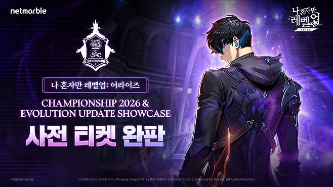 넷마블은 지난 6일 티켓링크에서 '나 혼자만 레벨업:어라이즈 챔피언십 2026' 본선 관람 티켓 판매를 시작했으며, 조기 완판을 기록했다.