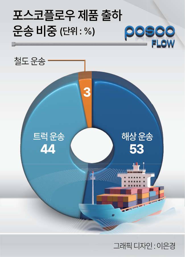 2003년 설립된 포스코플로우는 광양에 본사를 둔 포스코그룹 물류 기업이다. 철강 원료 수입부터 제품 출하까지 그룹 물류 전반을 맡으며 연간 약 1억3000만톤의 물동량을 처리한다.