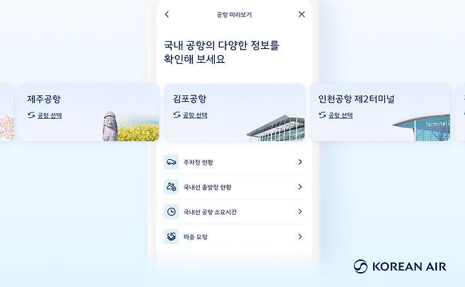 대한항공이 인천국제공항에서 제공하던 모바일 애플리케이션 앱의 '공항 미리보기' 서비스 범위를 7일부터 김포·김해·제주 등 국내 10개 공항으로 대폭 확대한다.