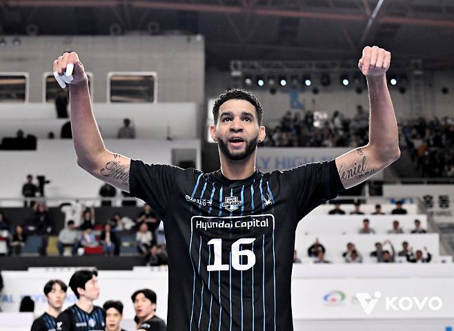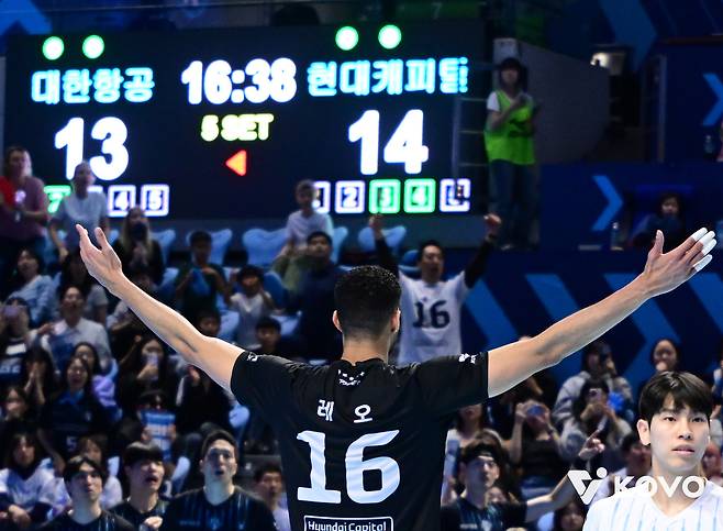 지난 6일 천안 유관순체육관에서 열린 2025~2026 V리그 남자부 챔피언결정전 3차전에서 대한항공에 세트 스코어 3-0 셧아웃 승리를 거둔 현대캐피탈의 '쿠바특급' 레오.